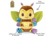 Les ailes marionnettes et le bouton Cœur lumineux permettent une interaction amusante. Différentes matières et textures encouragent le développement sensoriel de bébé : papier bruissant, velours, éponge, broderies,...