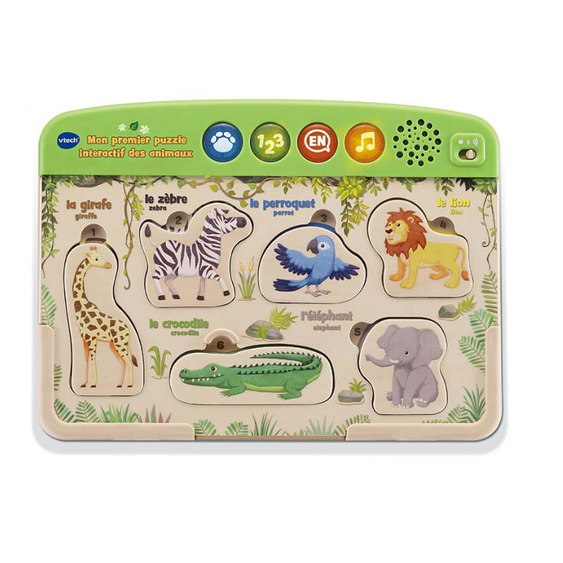 Mon premier puzzle interactif des animaux, jouet en bois certifié FSC®, permet à votre enfant d’apprendre tout en s’amusant.