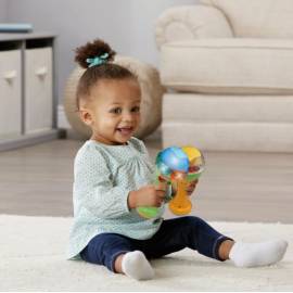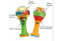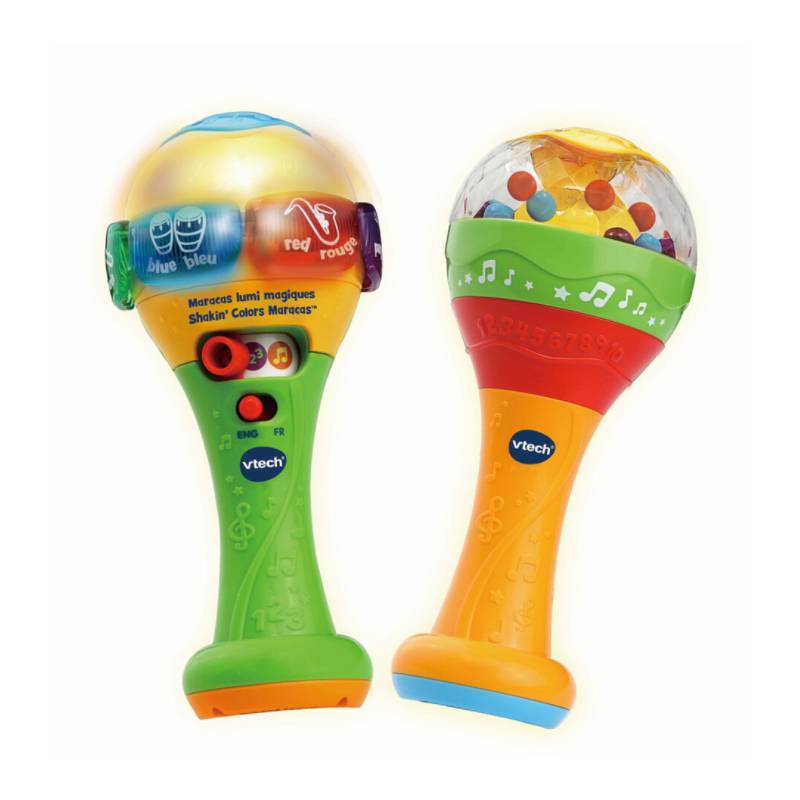 C’est l’heure de s’amuser en musique avec les Maracas lumi magiques 100% bilingues ! Votre tout-petit s’amuse en secouant la maraca à billes colorées et apprend en s’amusant avec la maraca interactive. Les instruments de musique et les couleurs n’auront plus de secret pour Bébé qui pourra danser au rythme des mélodies entraînantes !
