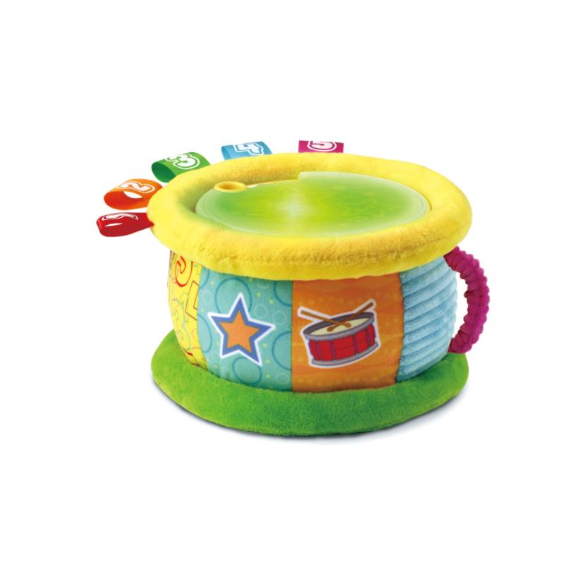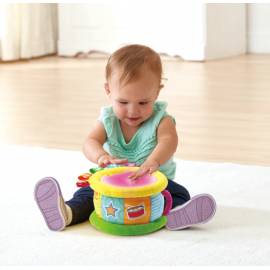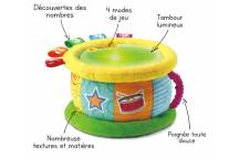 Grâce à son tambour lumi magique, votre tout-petit découvre les nombres et les couleurs en français et en anglais. Le tambour s'illumine au rythme du jeu et aide Bébé dans ses apprentissages. Les nombreuses matières et textures stimulent son sens du toucher et les différentes chansons et mélodies développent son oreille de futur petit musicien.