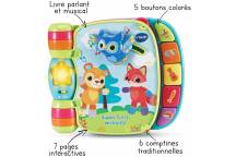 Un livre interactif pour écouter des comptines célèbres ! 6 comptines traditionnelles à écouter et 5 boutons colorés pour jouer du piano et encore plus.. Pour les enfants de 6 à 36 mois.