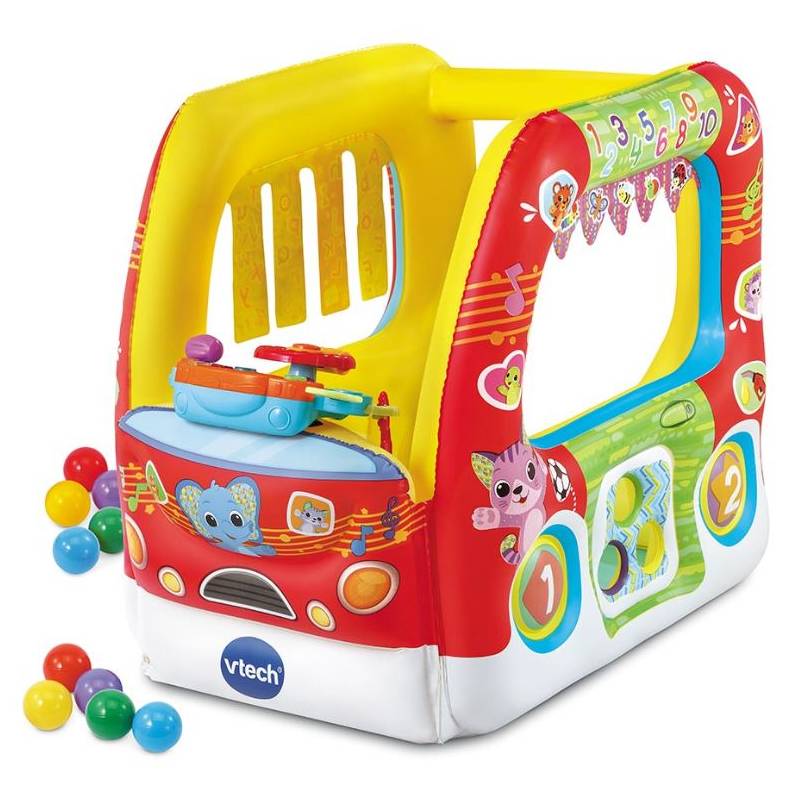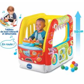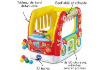 Votre tout-petit manipule les balles colorées et joue avec le volant qui se transforme en panier de basket. Les parois de la voiture gonflable apprennent à votre enfant les chiffres, l’alphabet et promettent des heures de jeu grâce aux espaces prévus pour lancer les balles. En route pour les découvertes !