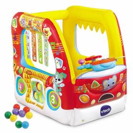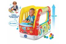 Cette Super Tut Tut Cabane est un centre d'activités gonflable et musical, en forme de voiture, adapté à la taille des enfants (à partir de 9 mois)