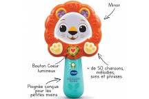 Avec son Hochet miroir lumi lion, votre enfant découvre son reflet dans le miroir et stimule son acuité visuelle. Bébé s'amuse à secouer son hochet miroir lumi lion et l'emporte partout avec lui.