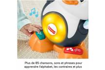 Lorsque bébé appuie sur les touches, le pingouin agite ses nageoires et balance la tête de gauche à droite tout en diffusant des musiques et des phrases pour apprendre l’alphabet, les contraires et plus encore.