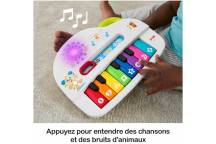 En appuyant sur les touches de ce piano lumineux, bébé entend de vraies notes de piano, des coin-coin et des meuh amusants, mais aussi des chansons entraînantes et des phrases pour l’aider à découvrir les couleurs, les chiffres et les formes ! Avec sa poignée pratique, emportez ce piano partout pour prolonger les aventures musicales de bébé !