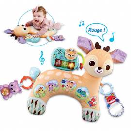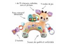 Ce joli coussin d'éveil musical, tout doux, suit bébé dans son évolution : allongé ou assis, il l'accompagne en douceur ! En s’amusant avec son coussin d’éveil sensoriel, votre tout-petit découvre les animaux, les couleurs et la musique tout en éveillant ses sens. Le piano interactif et les hochets sont amovibles et suivent Bébé dans tous ses déplacements !