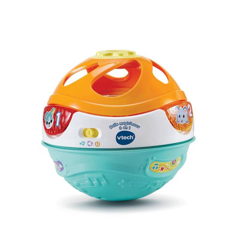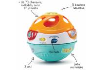 Transformable en rouleau ou en tambour, la Balle magic’moov 3 en 1 est idéale pour faire le plein de découvertes tout en s’amusant. Les deux modes de jeu ainsi que les trois boutons lumineux permettent à votre enfant de découvrir les animaux, les couleurs et les chiffres. Magique ! La balle est motorisée et peut rouler toute seule. Elle incite votre tout-petit à la suivre pour développer sa motricité.
