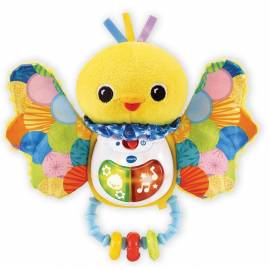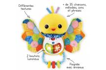 Un hochet sensoriel tout doux qui parle et chante pour amuser Bébé et développer sa motricité fine de 3 à 24 mois.