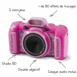 Le KidiZoom Duo FX est un appareil photo numérique multifonction avec flash intégré pour les enfants à partir de 4 ans. En plus de prendre des photos et des vidéos, il permet de jouer, de faire des trucages rigolos, de rajouter des cadres, et même d’écouter de la musique !
