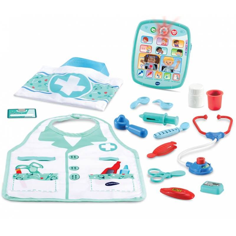 Contenant une tablette interactive et 15 accessoires, ce kit du parfait docteur est complet, réaliste et éducatif !