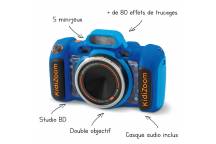 Le KidiZoom Duo FX est un appareil photo numérique multifonction avec flash intégré pour les enfants à partir de 4 ans. En plus de prendre des photos et des vidéos, il permet de jouer, de faire des trucages rigolos, de rajouter des cadres, et même d’écouter de la musique !