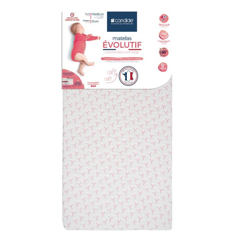 Le matelas Évolutif déhoussable 70x140cm de Candide assure à bébé un confort optimal et évolutif suivant son poids grâce à ses deux faces de couchage. Ce matelas va suivre votre enfant au cours de sa croissance :