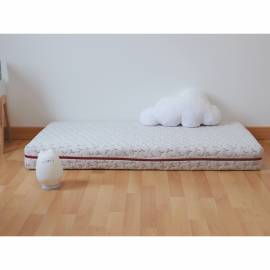 Sa fabrication combine une âme en mousse polyuréthane et une surface de couchage en mousse de latex. La mousse polyuréthane est la matière de garnissage la plus répandue car elle s’adapte parfaitement au corps de bébé pour lui garantir une grande qualité de confort durant son sommeil.