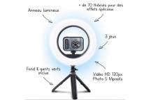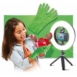 Idéal pour les apprentis réalisateurs, cet appareil vidéo est simple d'utilisation grâce à un logiciel de création vidéo et muni d’accessoires pour faire comme les pros (fond vert, gants verts et anneau lumineux de 20 cm). L'enfant capture des moments inoubliables et ajoute sa créativité grâce aux 70 effets spéciaux, filtres et cadres disponibles.