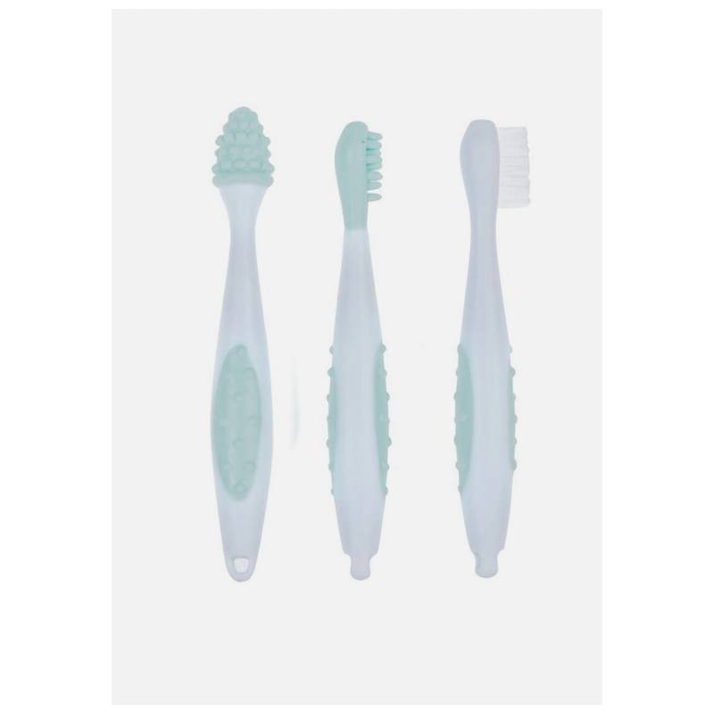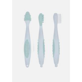 Un set de trois brosses à dents spécialement conçues pour l'hygiène dentaire de bébé tout au long de sa croissance.