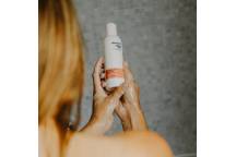 Grâce à la camomille et au bisabolol, il réduit les rougeurs et sensations de brûlure. L’eau de bleuet et le panthénol favorisent la régénération, l’hydratation et la protection de la peau.