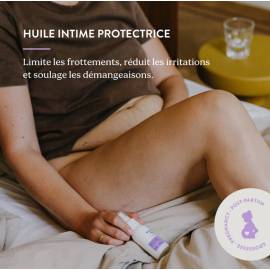 Appliquer une petite quantité dans la main, faire mousser délicatement sur la zone intime externe sans frotter excessivement, rincer à l’eau claire puis sécher en tapotant. Usage quotidien possible.