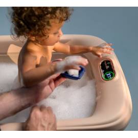 Grâce à son réducteur doux et antidérapant et à son thermomètre HighSense exclusif, Indigo garantit à votre enfant un bain toujours à la température idéale, dès les premiers jours.