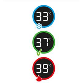 Ingénieusement placé au fond de la baignoire, dans la zone la plus chaude de l’eau, le thermomètre HighSense offre une lecture ultra-précise de la température :