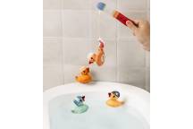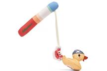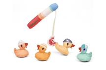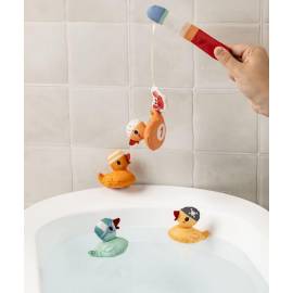 Plouf, plouf… 4 petits canards nagent joyeusement, prêts à être attrapés. Mais attention, un crabe espiègle s’invite dans le jeu et vient chatouiller les canards pour les attraper à la ligne.