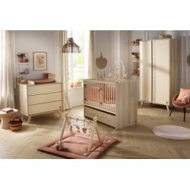 Un mobilier élégant et naturel pour une chambre douce et chaleureuse.