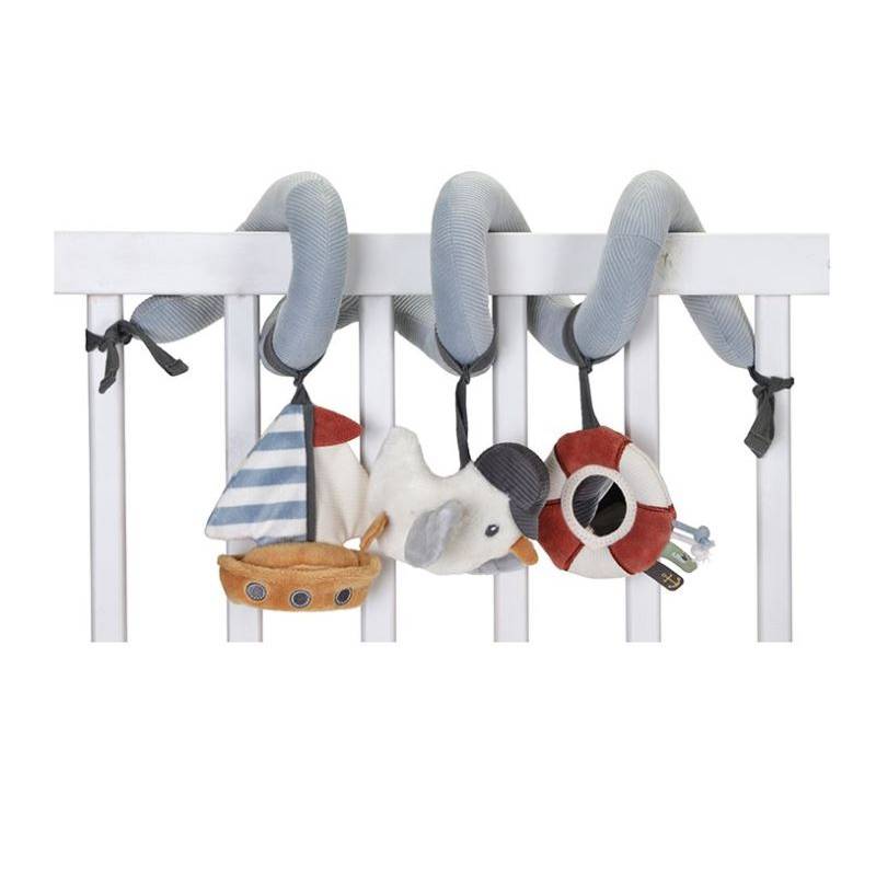 Chaque jour devient une nouvelle aventure dans la baie avec cette spirale d'activités attrayante. Ce jouet stimulant est en coton et velours côtelé et est doté de plusieurs jeux, dont une mouette, un voilier et une bouée de sauvetage avec différentes jolies étiquettes et un miroir pour la découverte de soi.