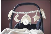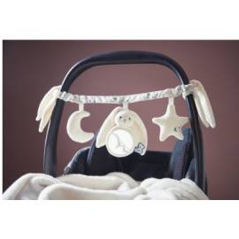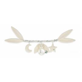 Cette chaîne s’accroche facilement à une poussette ou à un cosy grâce aux grandes oreilles du lapin Lapinoo, devenues un signe distinctif de Kaloo.
