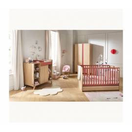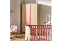 Ses grandes portes décor chêne doré sont sublimées par un une touche de couleur apportant délicatesse et subtilité à la chambre de bébé.