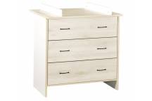 Un plan à langer de la même collection pourra être fixé sur le dessus de la commode (non inclus).
