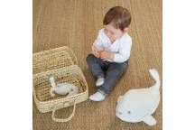 Le flanc de la baleine en poils ultra doux sera agréable à toucher pour les mains sensibles des tout petits. Avec ces deux nageoires et sa queue, cette peluche pour bébé sera facile à attraper pour favoriser la motricité.