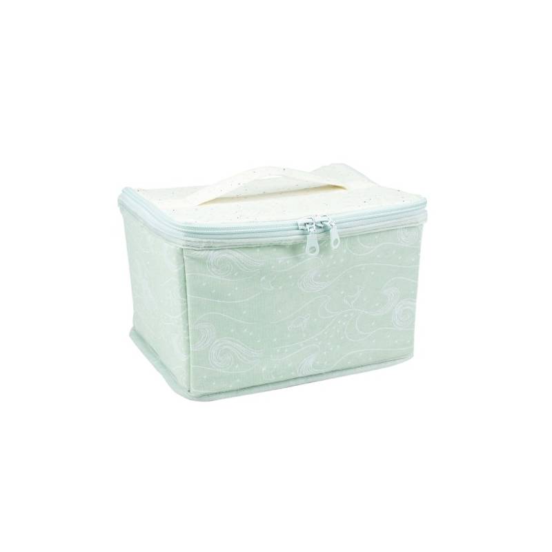 Avec ses doux motifs océans au coloris vert d'eau et son dessus beige chiné, ce vanity bébé est un véritable intemporel. Aussi utile que pratique grâce à sa dimension 21x16x16cm, il sait se rendre efficace.