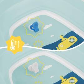 Le témoin de chaleur de la baignoire pliable change de couleur (de bleu à blanc) en fonction de la température de l'eau. Un vrai allié pour vous aider à préparer un bain à bonne température. Il fait également office de bouchon de vidange. De quoi gagner du temps une fois le moment du bain terminé !