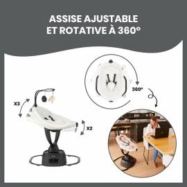 Grâce son système innovant d'assise rotative à 360°, votre bébé participe aux moments de famille et reste toujours près de vous. Vous pourrez y installer bébé selon ses besoins grâce à 5 positions d’assises facilement réglables à une main. Il y sera parfaitement en sécurité avec son harnais 5 points.