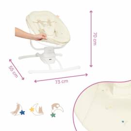 Son cale tête et sa forme adaptée au dos des nouveau-nés rendent cette balancelle ultra confortable, idéale pour un moment de repos ou d'éveil, dès la naissance.