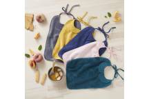 Un grand bavoir en éponge bambou avec lien et col fantaisie en double gaze de coton ton sur ton.