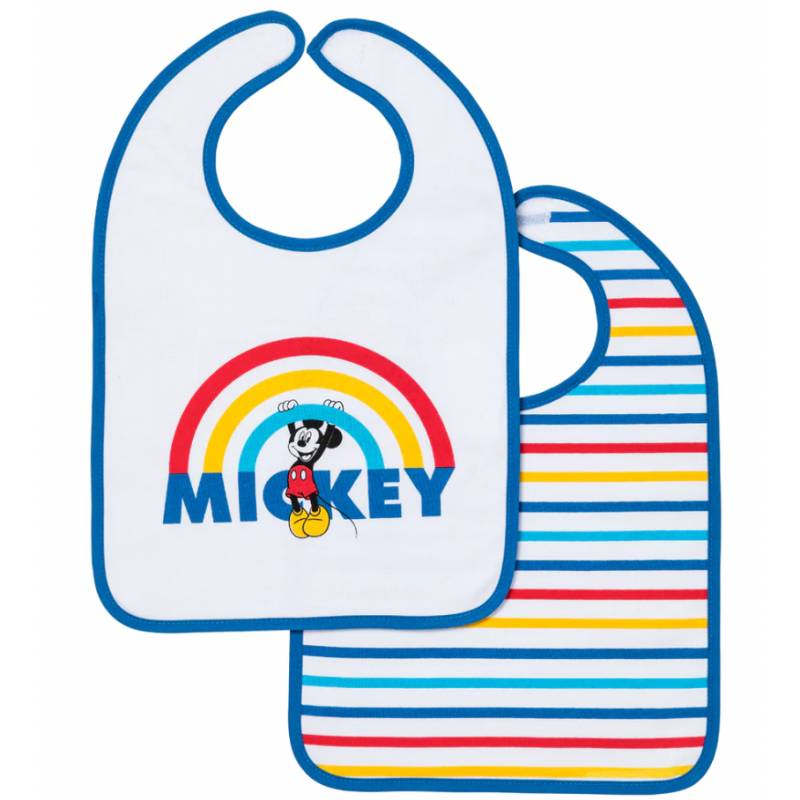 Lot de deux bavoirs en coton doublé éponge à l'effigie de Mickey Mouse.