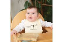 Très joli bavoir silicone avec la tête d'un petit chat trop mignon.