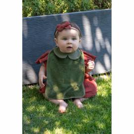 Un grand bavoir en éponge bambou avec lien et col fantaisie en double gaze de coton ton sur ton.
