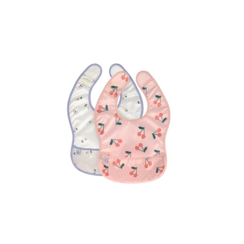 Offrez à votre tout-petit une expérience de repas joyeuse et sans stress avec le lot de 2 bavoirs avec poche - Happy Fruits, Cerise de la marque LÄSSIG.