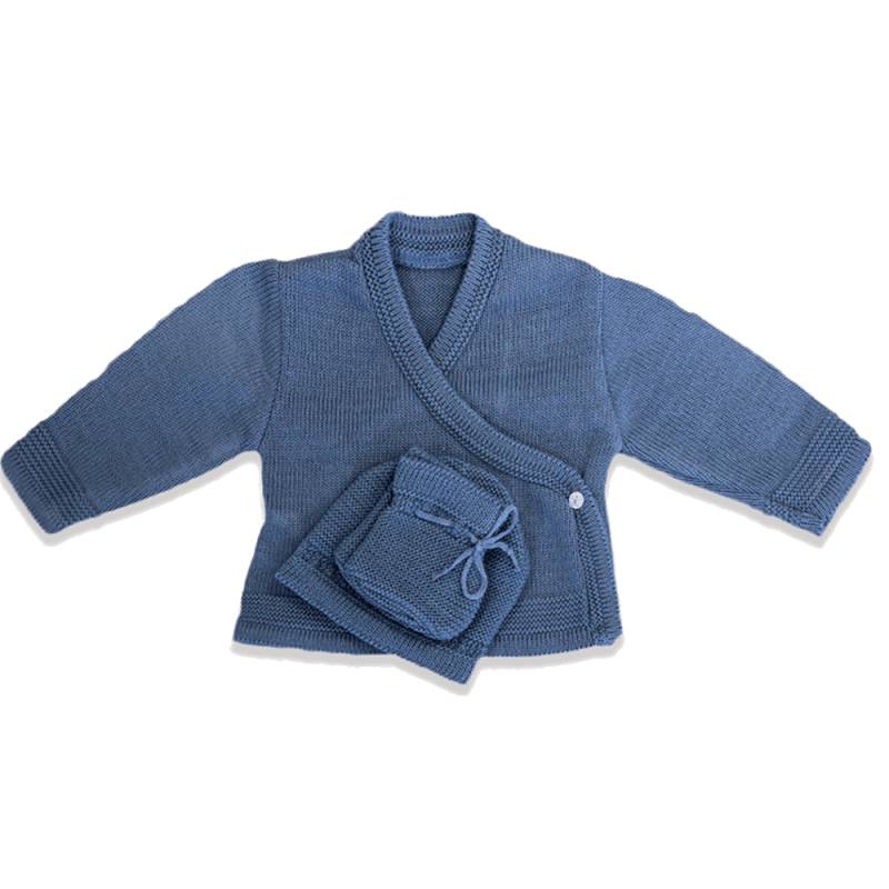 Brassière 1 mois + Bonnet + Chaussons tricot Indigo