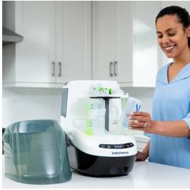 Le Lave-biberon Multifonction Baby Brezza est le tout premier appareil capable de laver, stériliser et sécher automatiquement tous les accessoires pour bébés, des biberons aux pièces de tire-lait, en passant par les tasses à bec et autres objets.