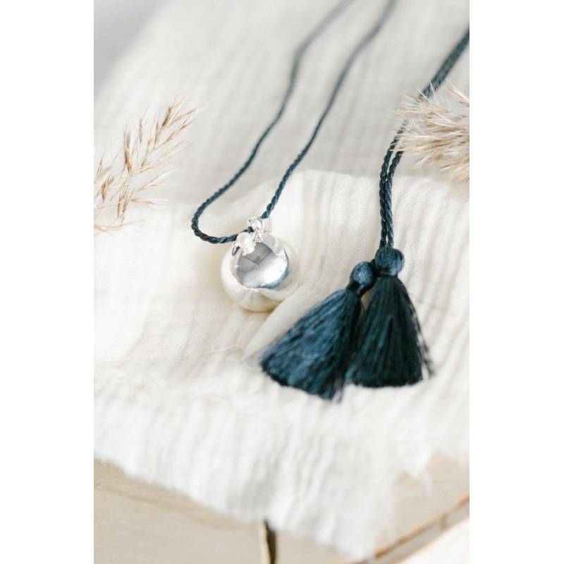 Ses pompons peuvent être portés le long de votre nuque ou bien en cascade sur votre joli ventre rond.