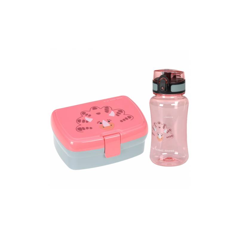 Set boîte à goûter et gourde Dino Rose