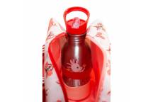 La gourde est en acier inoxydable, résitante au temps et aux coups. Sa base en silicone et son bouchon en plastique se tient facilement.