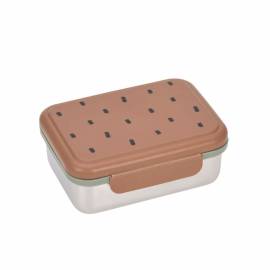La boîte à goûter en inox Happy Prints de LÄSSIG est sans BPA, robuste, et passe au lave-vaisselle. Le couvercle est en polypropylène.