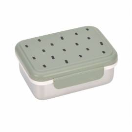 La boîte à goûter en inox Happy Prints de LÄSSIG est sans BPA, robuste, et passe au lave-vaisselle. Le couvercle est en polypropylène.