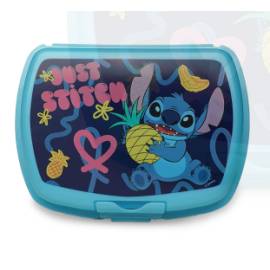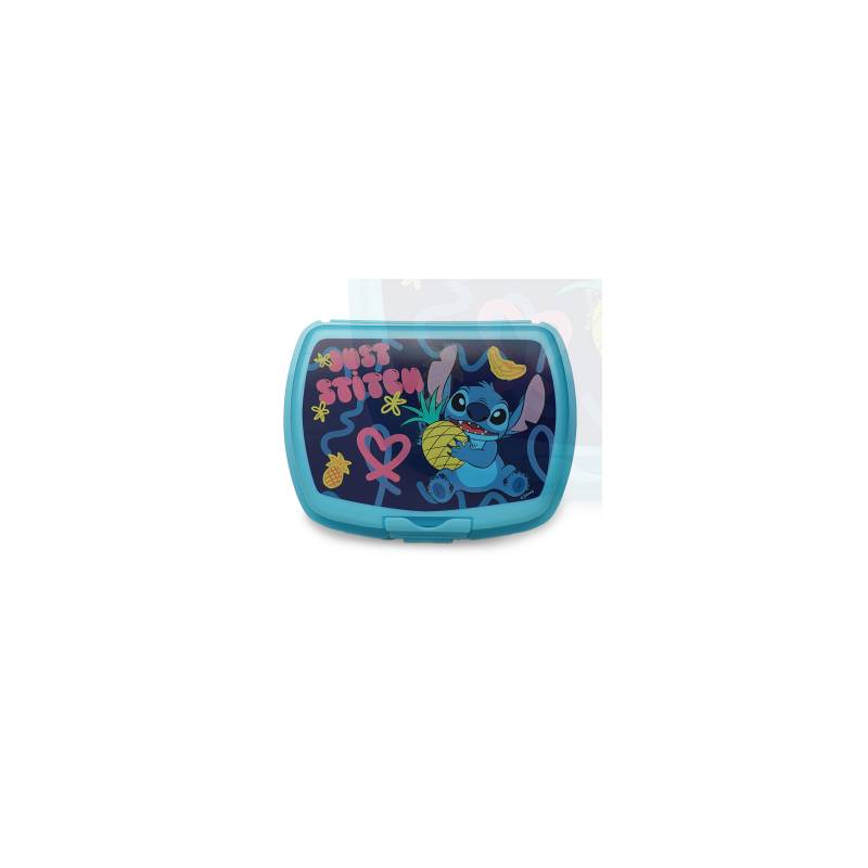 Boîte à goûter illustrée des personnages Lilo & Stitch, parfaite pour les repas et encas à l’école, en sortie ou en voyage.