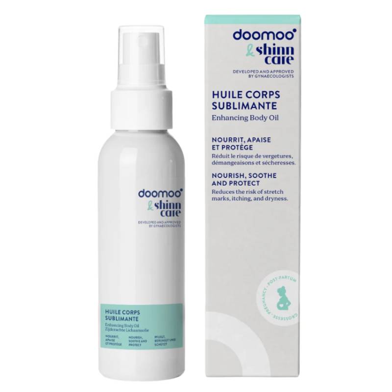 Prenez soin de votre peau pendant la grossesse et après la naissance avec l’huile corps sublimatrice doomoo x Shinncare, votre alliée naturelle pour une maternité tout en douceur.