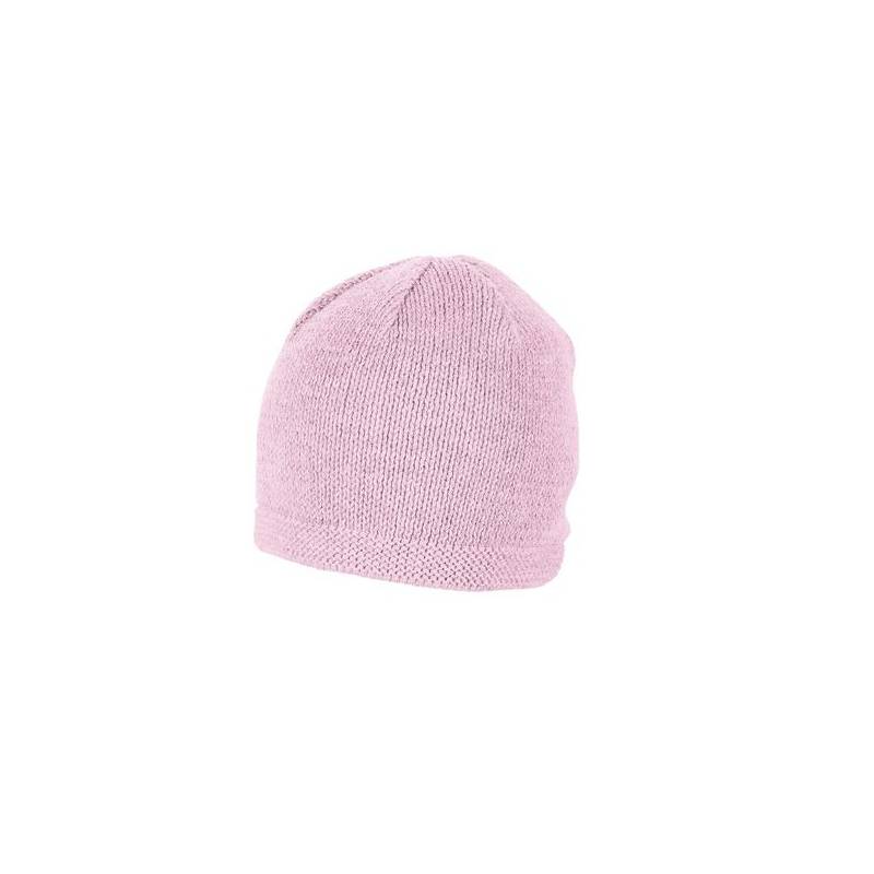 Ce bonnet tricoté en coton doux se niche doucement contre la petite tête délicate.